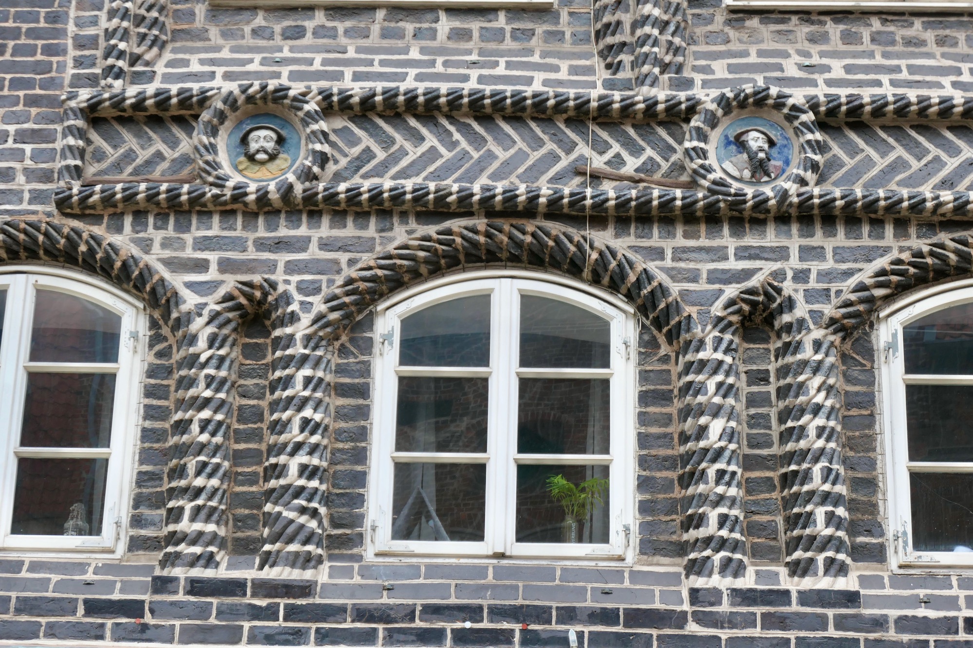 Así, además de la típica plaza central centroeuropea, tiene un conjunto de bonitas calles en las que se van sucediendo casas históricas muy bien cuidadas. Sus fachadas nos llaman la atención. Lejos de las habituales casas con entramados de madera, aquí lo que predomina es el ladrillo desnudo. Las más elegantes sustituyen el ladrillo por piedra y se decoran con medallones o rodeando sus ventanas de cordeles esculpidos. También hay bastantes puertas abocinadas.