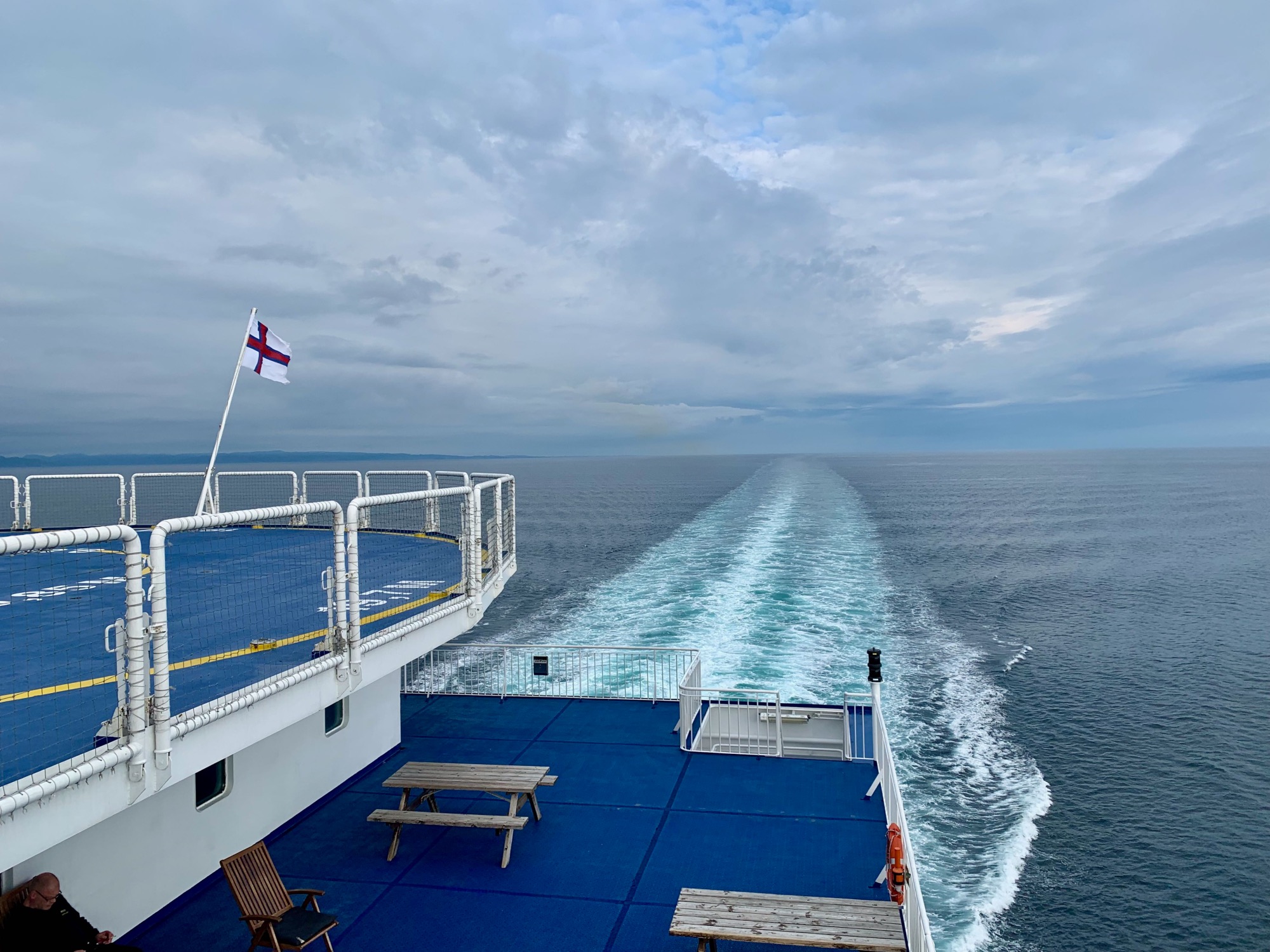 De vuelta a la fila, coincido con una agradable familia de Elorrio que viajan en otra GV y que van a Islandia para dos semanas. A la vuelta paran 3 días en las Feroe como nosotros. Ellos también llevan litio y van a dejar el frigo encendido. Ah! Y tampoco han desmontado lo que llevan en el portabicis. Se ve que son mucho más lanzados que yo. También hay que serlo para animarse a ir en ferry para solo dos semanas.