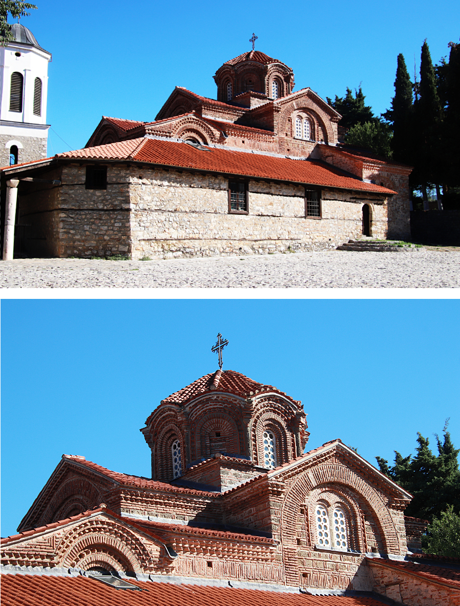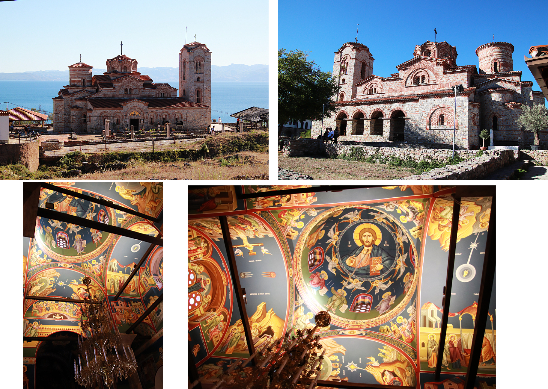 Antes de empezar la ruta vamos a ver la iglesia de Santa María Peribleptos que no pudimos ver ayer. Esta iglesia es, sin duda, la más importante de Ohrid y, en mi opinión, de todas las que hemos visto hasta ahora tanto por el magnifico estado de conservación de sus frescos (fueron restaurados en los años 50) como por los temas que desarrollan. También es conocida como Iglesia de San Clemente porque durante la ocupación otomana las reliquias del santo fueron custodiadas aquí.