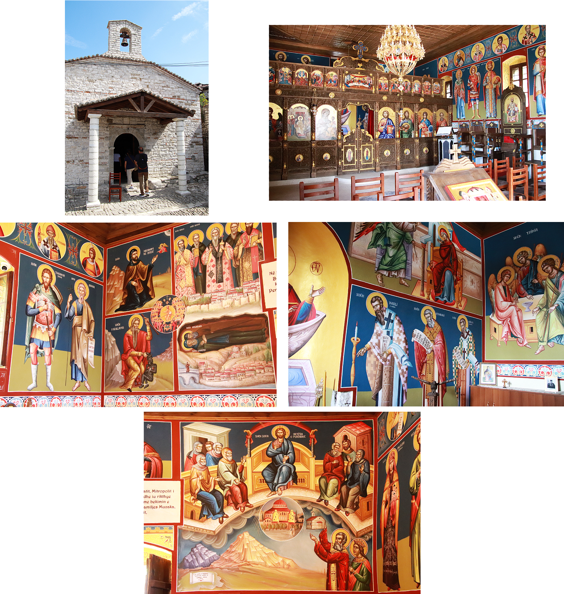 Visto el museo, nos dirigimos a las tres iglesias con frescos que hay en el recinto del castillo: la Iglesia de Santa María de Blanquerna, del siglo XIII, que contiene frescos del hijo de Onufri y es la más antigua de Berat; la de San Nicolás, del XIII-XIV; y la de la Santísima Trinidad, también del XIII. Pero, para gran disgusto mío, las dos primeras están cerradas, y a la tercera ya no vamos, aunque la vemos de lejos.