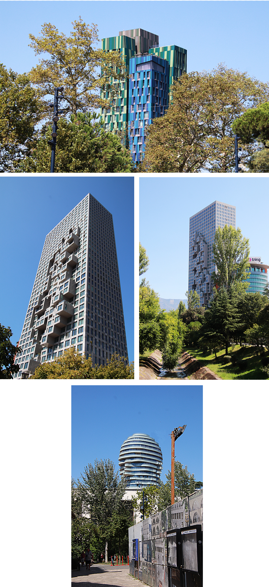Nos dedicamos a pasear hasta que decidimos volver al camping. En este paseo y en el de ayer hemos podido contemplar también la arquitectura moderna que se está construyendo en Tirana. Pongo algún ejemplo