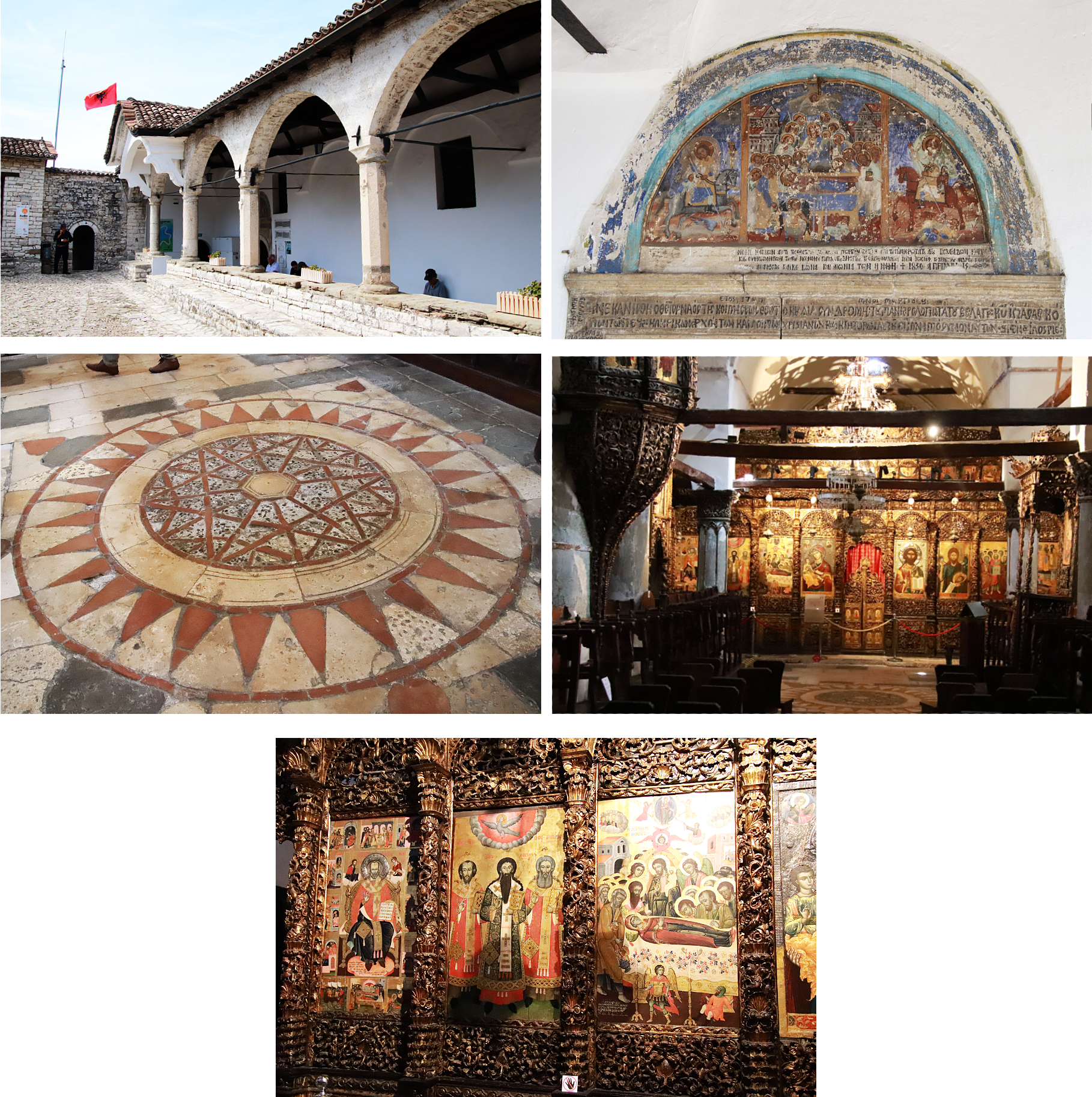 La siguiente parada es en el Museo Iconográfico Onufri, recibió este nombre en honor a Onufri, un gran pintor del siglo XVI influido por el Renacimiento italiano. Está ubicado en la Iglesia de la Dormición de Santa María y dedicado al arte y la iconografía bizantinos. La iglesia, según las inscripciones, fue construida en 1797 sobre los cimientos de una iglesia bizantina más antigua. En ella destacan el suelo de losas de piedra que representa una imagen simbólica del sol y el magnífico iconostasio tallado en madera y cubierto de pan de oro.