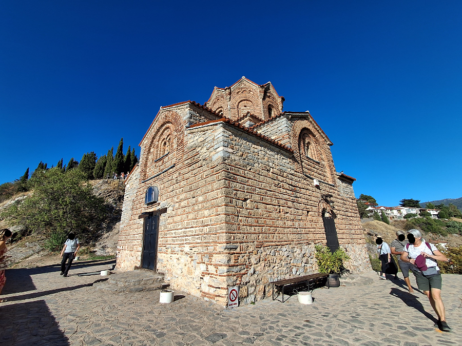 La primera iglesia de este lugar fue fundada por San Clemente en el año 893, y en ella se enseñó por primera vez el alfabeto glagolítico. El santo, que llegó a ser arzobispo de Ohrid, fue enterrado tras su muerte (en el 916) en la cripta que él mismo había mandado construir. En el siglo XV, los turcos transformaron el templo en mezquita, y sus ruinas fueron demolidas en el año 2000 para excavar el yacimiento arqueológico de la antigua ciudad griega de Lychnidos.