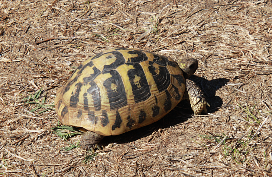 El yacimiento es grande y hay más restos pero en peor estado. De repente se nos cruza una tortuga.