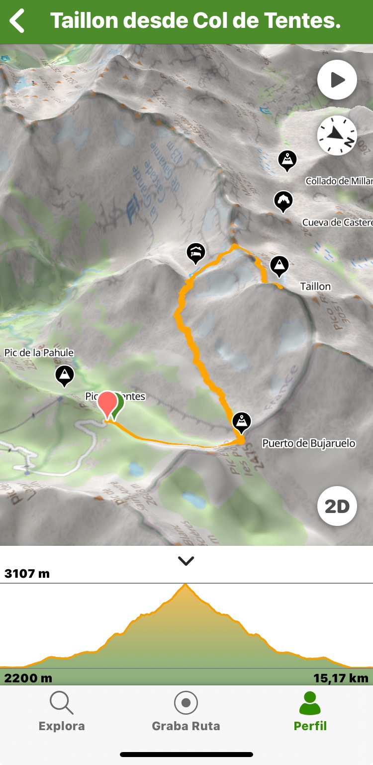 Itinerario: Col de Tentes -> Puerto de Bujaruelo -> Zona de cascadas -> Refugio de Sarradets -> Brecha de Rolando -> Cima del Taillón (3144 m).
